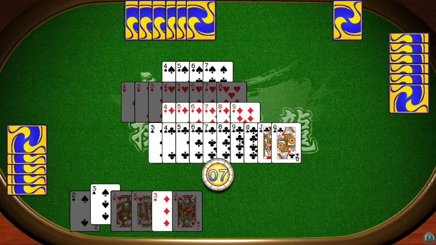 排七,又称“铺七”、“接七”,采用标准扑克牌进行博弈。所有牌以数字“7”为中心向上下延展,每张牌的位置及顺序都至关重要,一步踏错,满盘皆输。